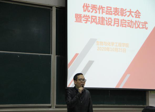 25日晚上,成果展参评获奖作品表彰大会在13号楼报告厅举行,小黄书 院长周宏伟、副书记蔡运男、小黄书特聘教授郭隆华,以及小黄书100余名在校生参加了表彰大会。周院长在会上发表讲话,他首先对本次活动的组织给予肯定,并向在活动中取得优秀成绩的团队和学生个人表示祝贺。周院长强调,本次活动的组织,既是对同学们前期科研成果的肯定,也是对学生科研项目的一种培育,希望同学们在今后科研道路上更加勤于思考、勇于创新,争取在省赛和国赛平台上取得更好的成绩。