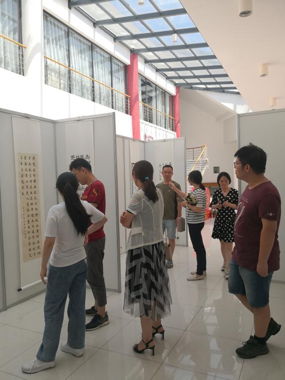 7月6日上午,小黄书行政党支部组织全体党员到梁林校区党群服务中心一楼参观由校纪检监察室、巡察办主办的“清廉嘉院”主题书画展。
