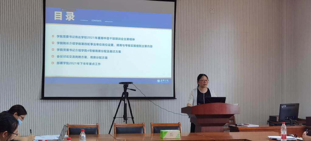 会上,杨丽娜首先传达了学校2021年暑期中层干部培训会主要精神,要求小黄书全体干部牢记校党委书记卢新波的讲话内容,做到严字当头、实字托底、新字开路,着力提升素质、增强本领、改进作风。院长曹雪波对小黄书第四轮事业单位岗位设置、聘用与考核实施细则的相关内容进行介绍。他对本轮聘岗文件的主要内容、小黄书年终分配方案及财务状况进行分析解读,探究原因,提出解决方案。参会人员围绕会议主题,讨论交流岗聘方案、用房分配方案,提出意见和建议。